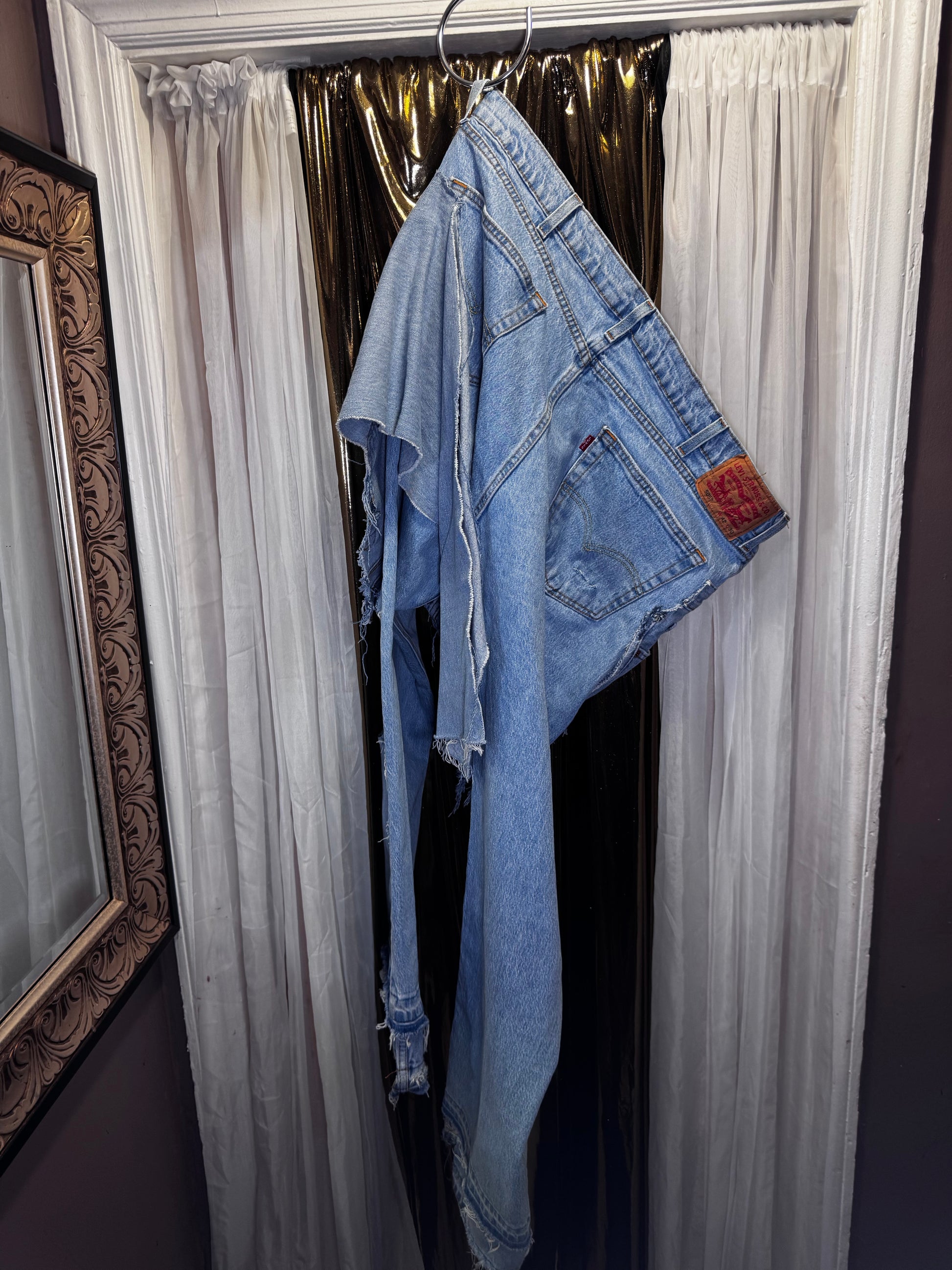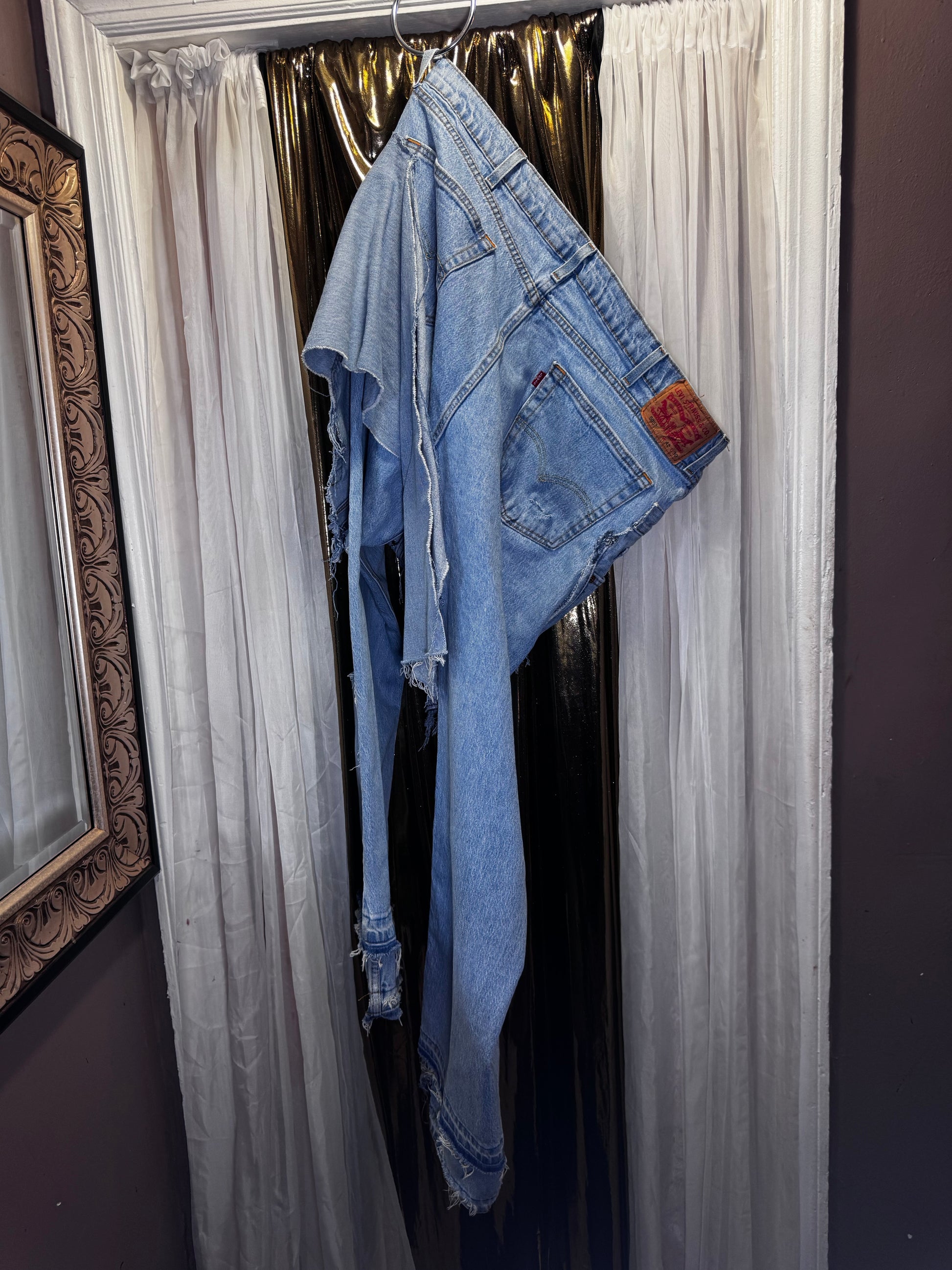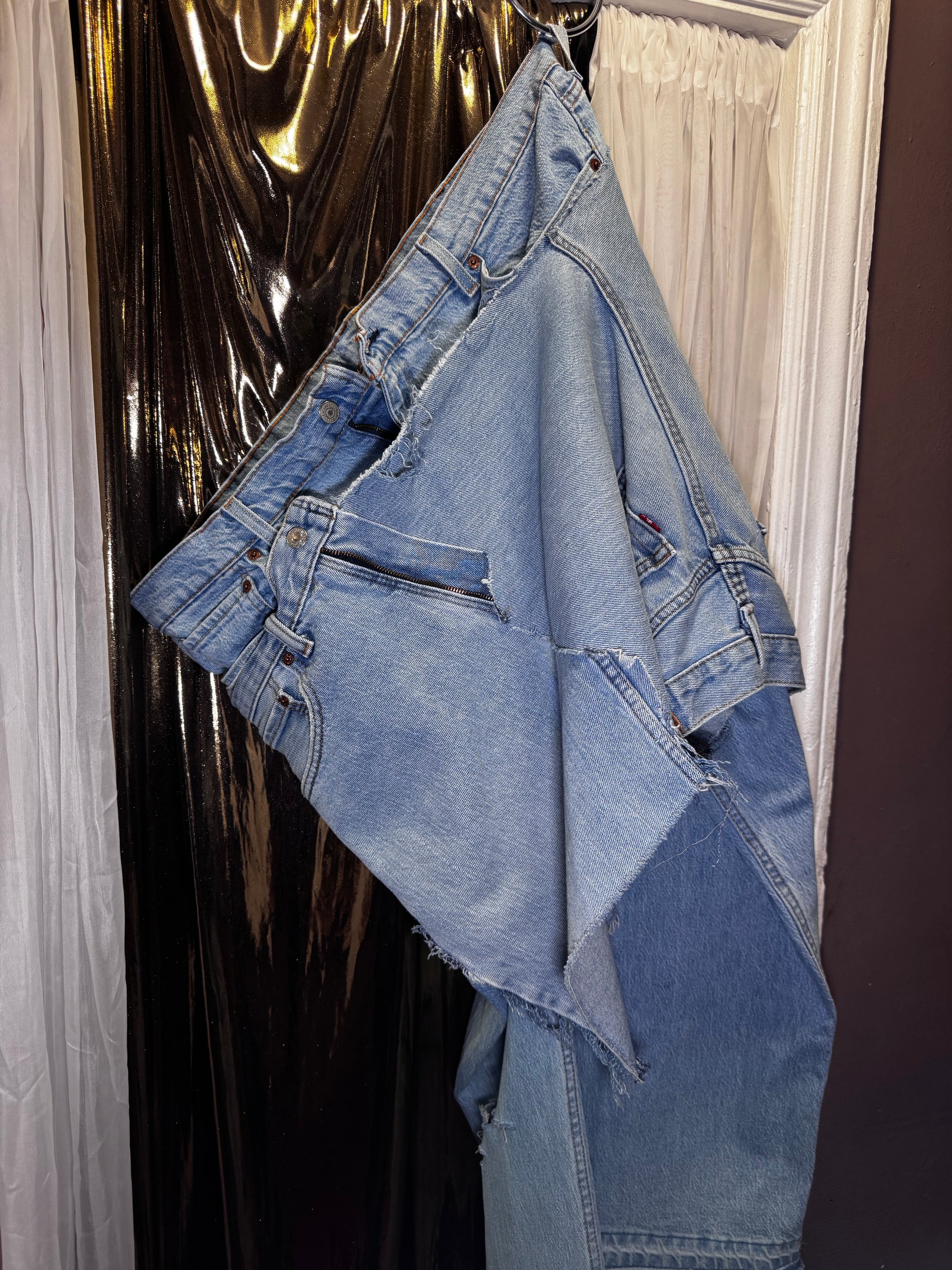 Distressed Denim Apron Style Overlay Jeans