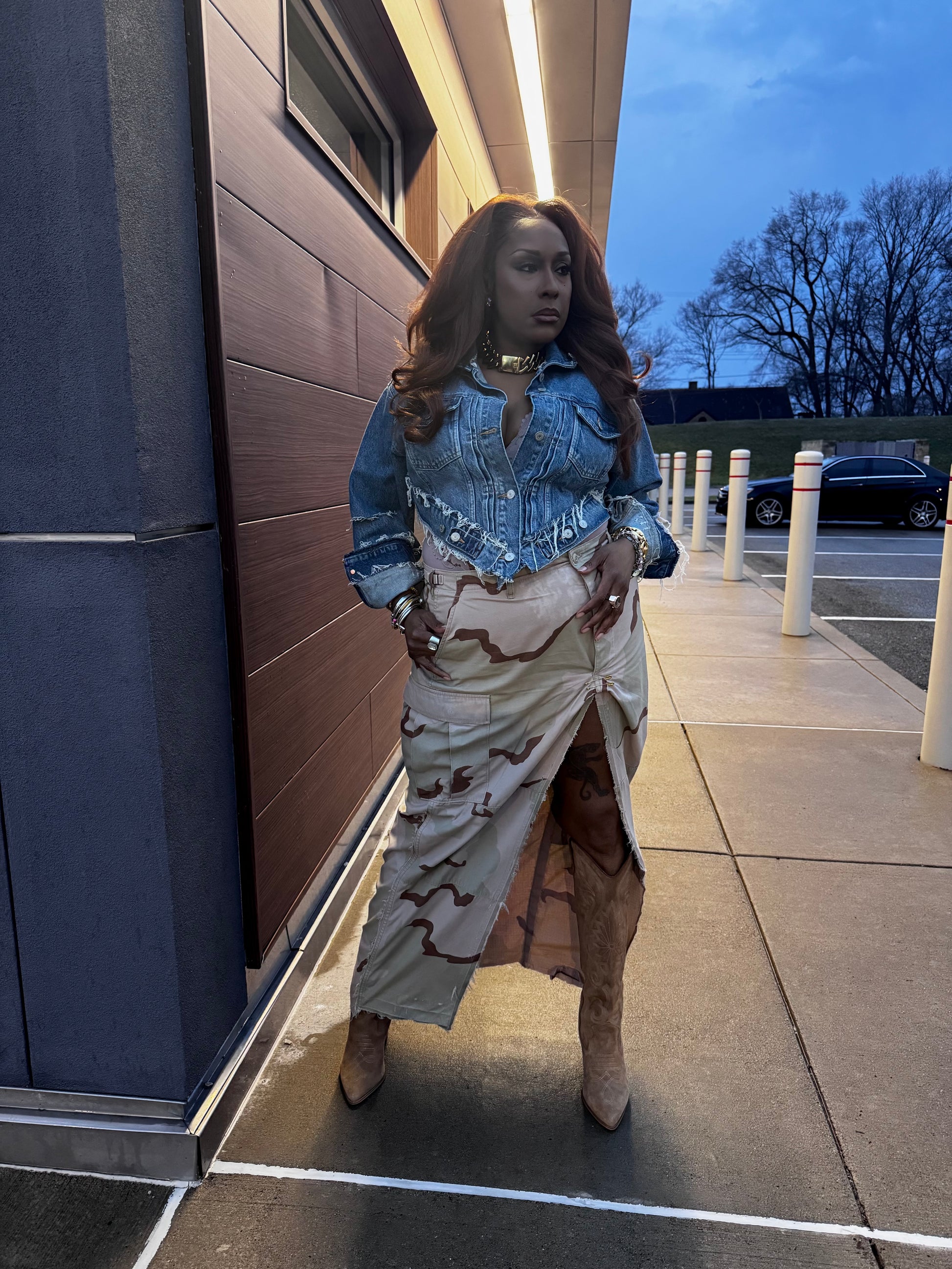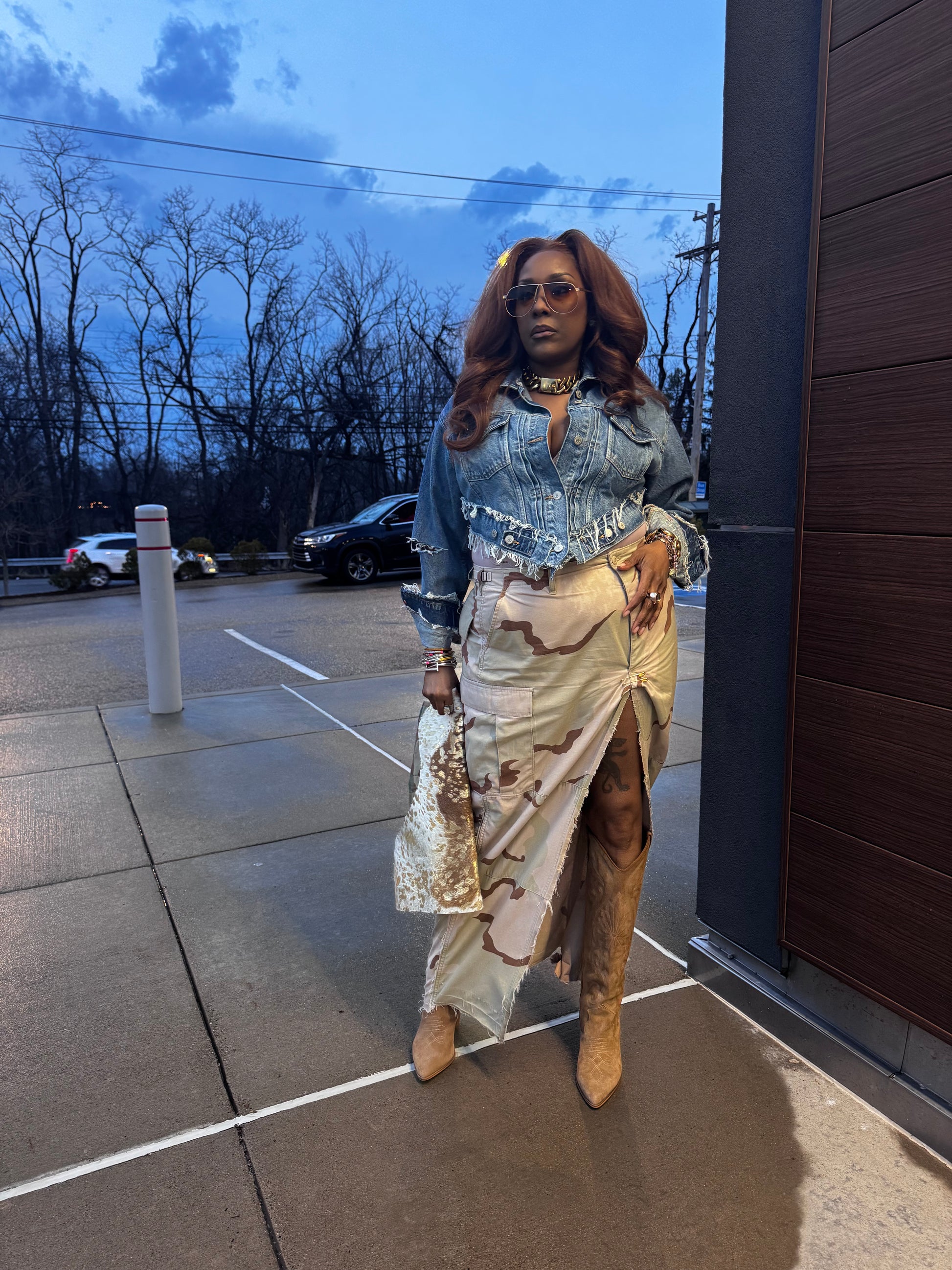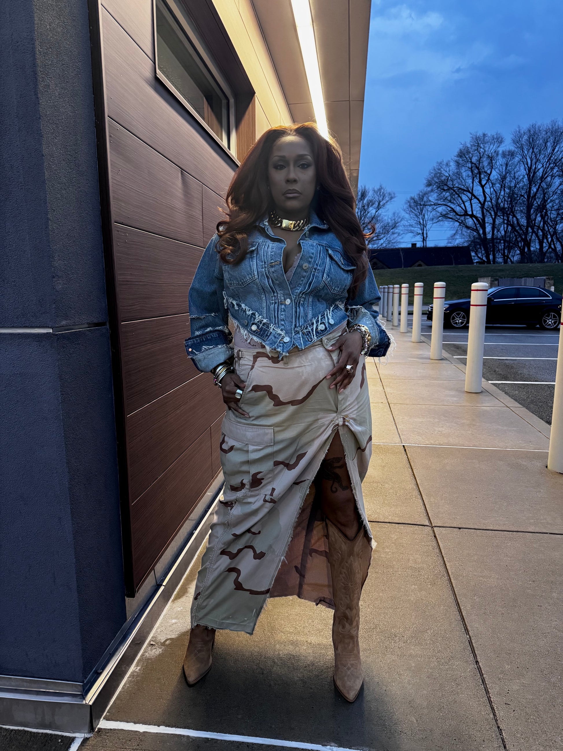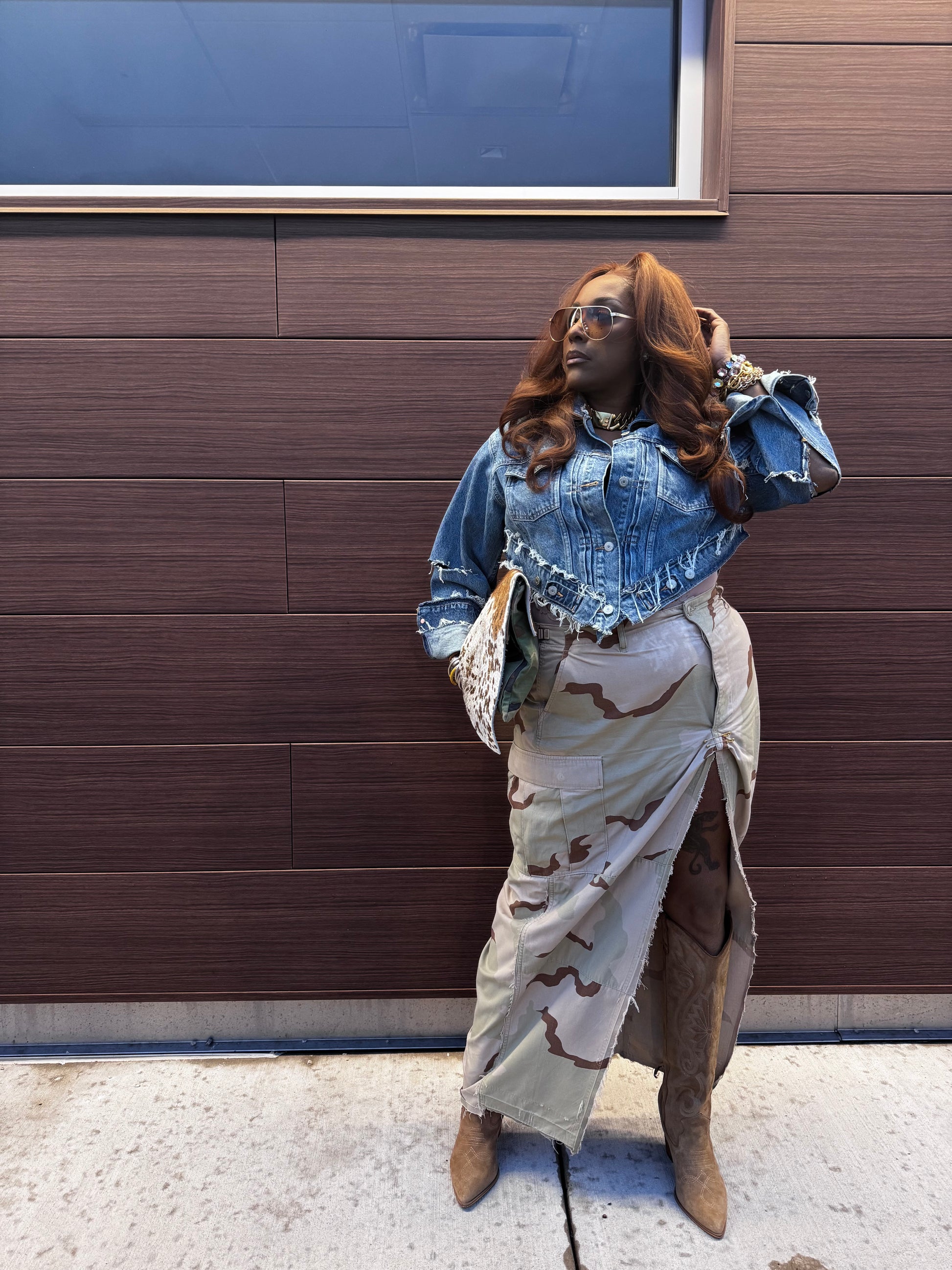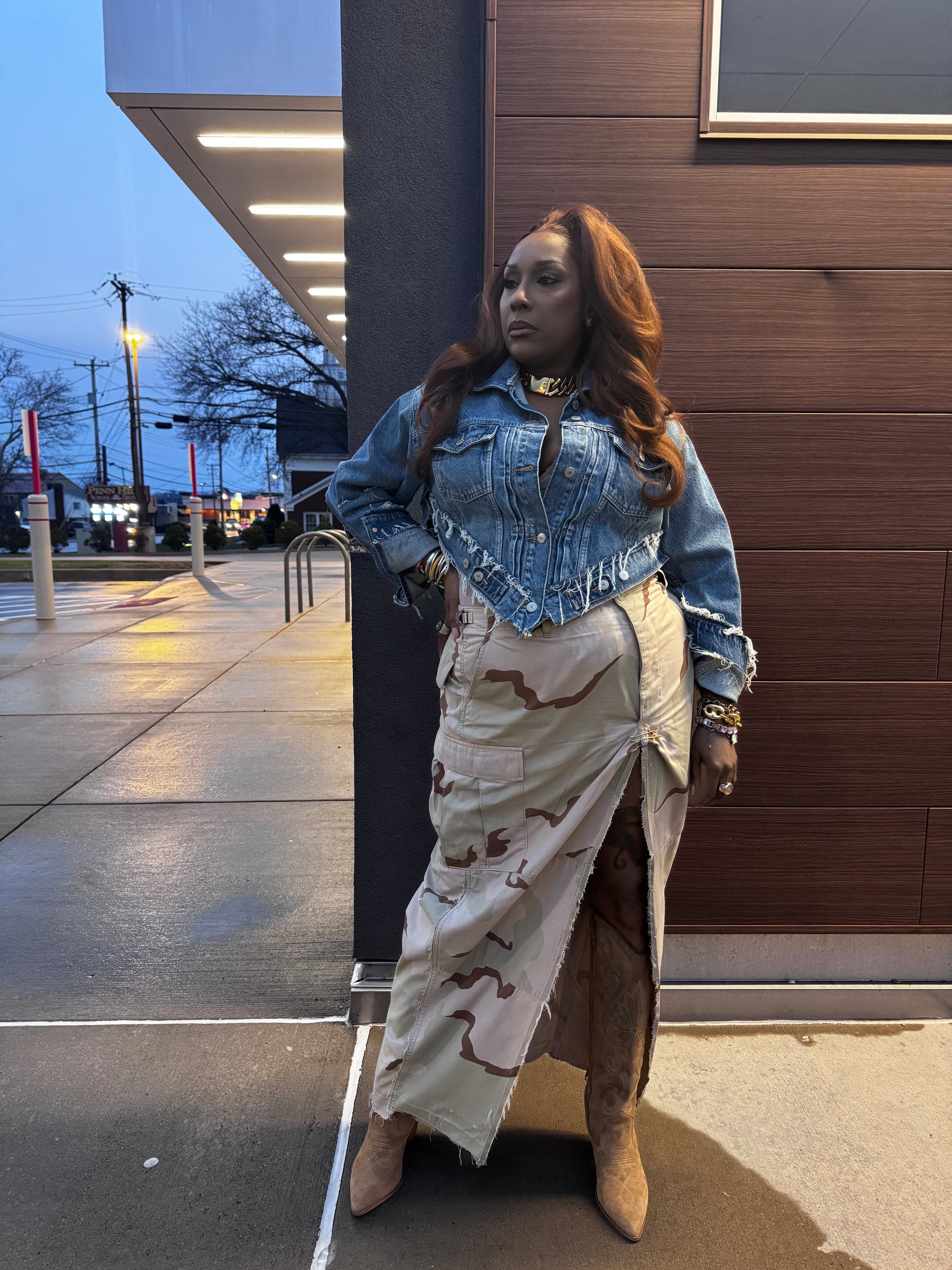 Details: oversized luxe pin on split for elevated look, distressed and grunge details