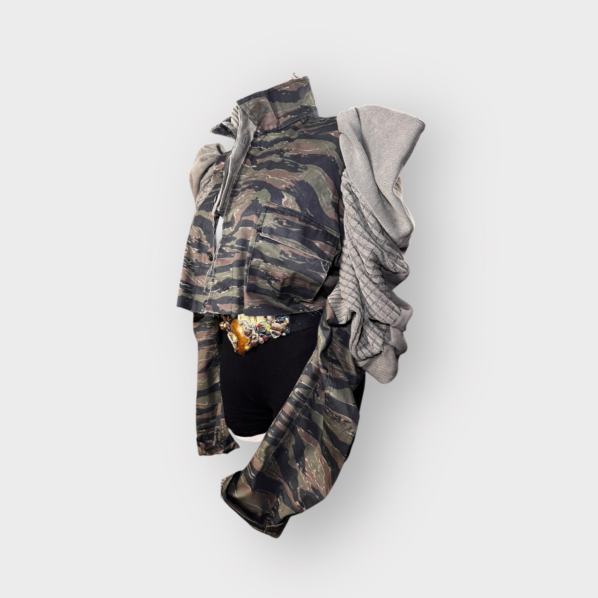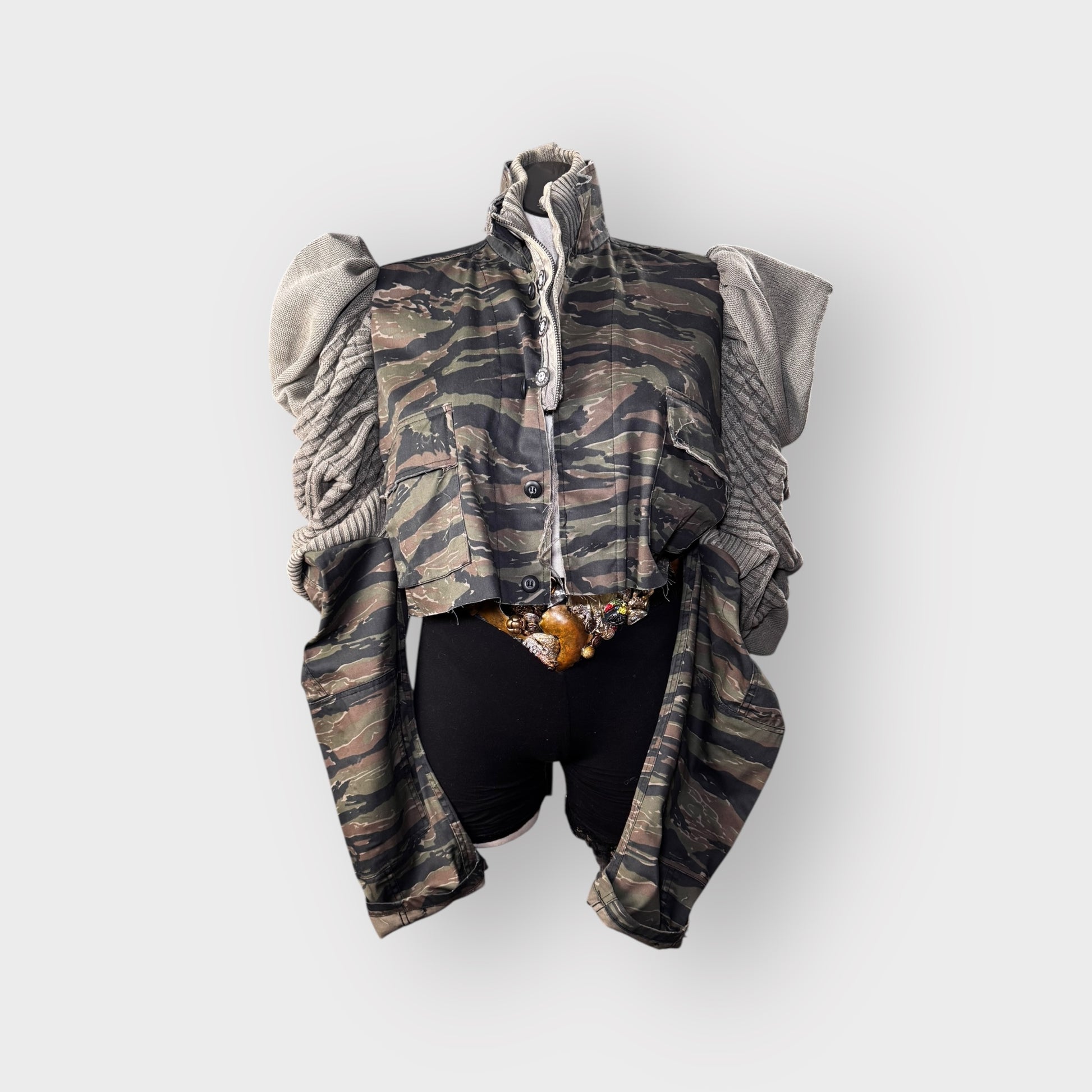 Tiger Stripped Cropped Camo Sweater Sleeve Shacket