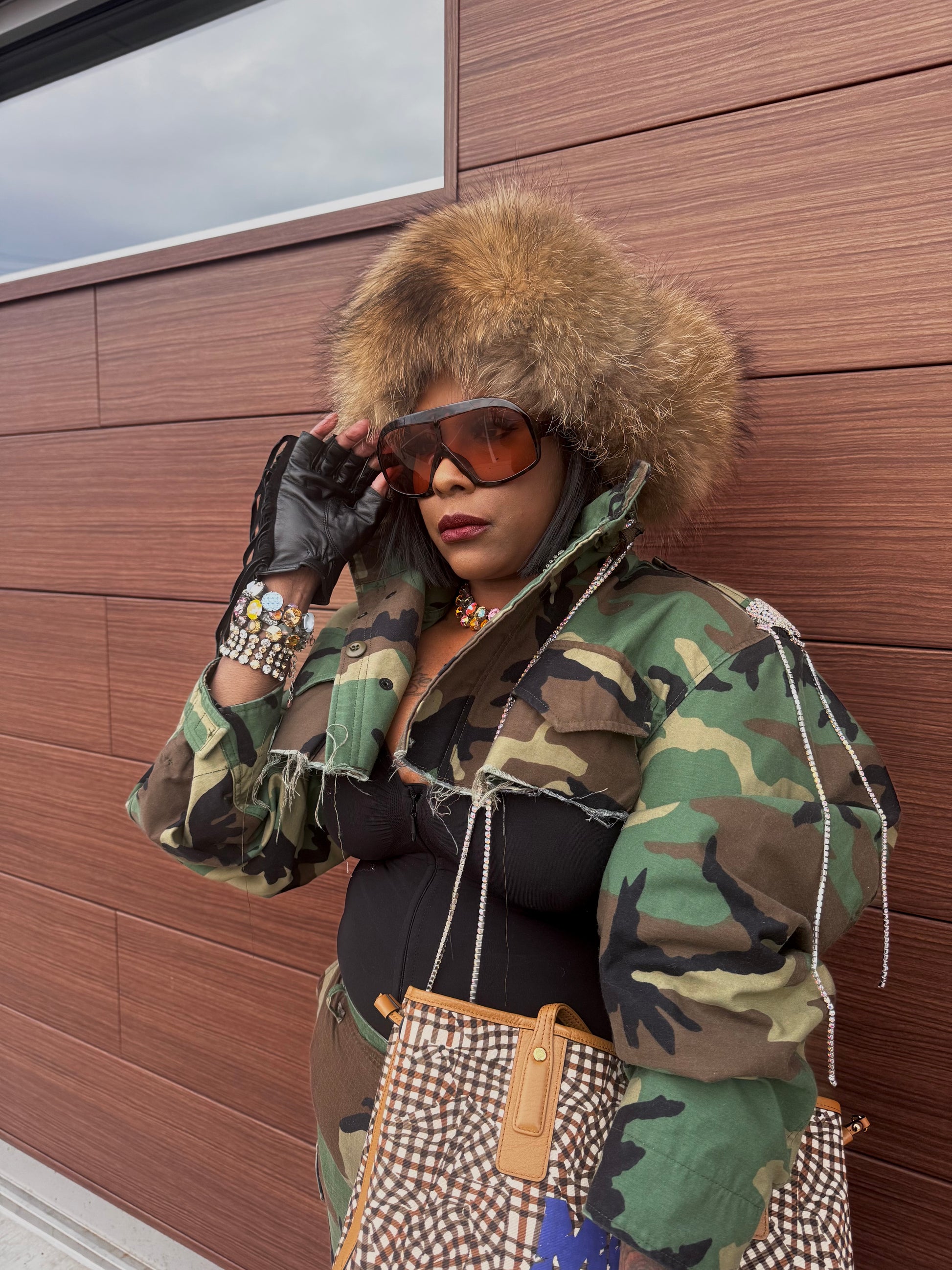 Custom Camo Faux Fur Wide Leg Cargos